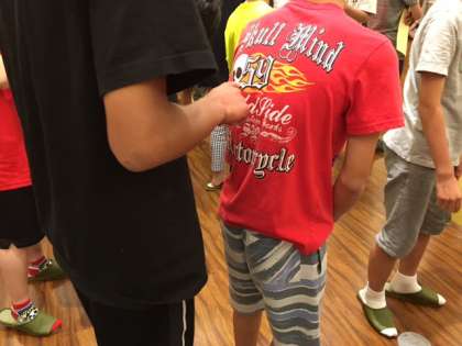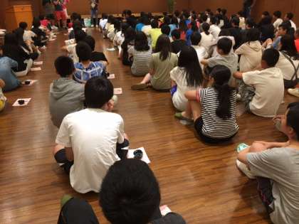 修学旅行実行委員による楽しい出し物・ゲームで、学年の仲がよりいっそう深まりました。