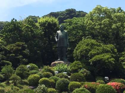 ボランティアガイドさんの案内のもと、西郷隆盛像や鶴丸城跡を巡ります。