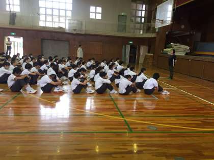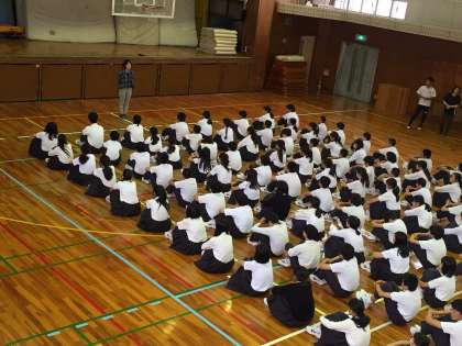 6日の6限目に体育館で校外学習の振り返りの集会をしました。