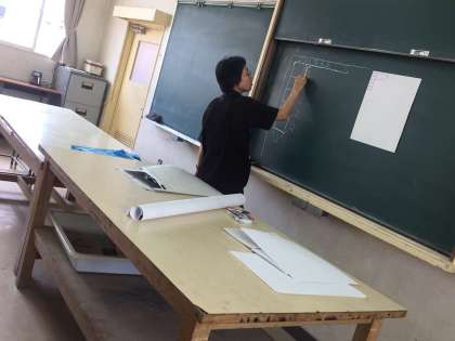 2年生美術科の授業です。金光先生の手本に沿って作業を行っていました。