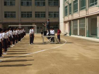 体操部の表彰がありました。校長先生と竹中先生のお話がありました。