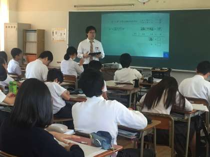 実習生の宇佐見先生の授業です。連立方程式の利用をしていました。
