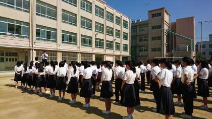 少し遅刻してくる人が多かったですが、晴天の中で朝の学年集会を行いました。