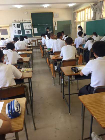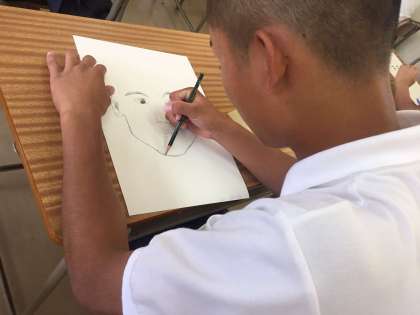 3年生では似顔絵を作成していました。実習生の三橋先生も授業に参加されていました。