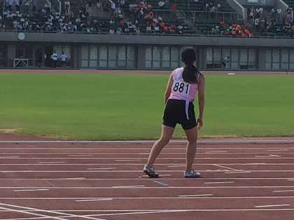 女子4×100mリレー、第1走者から第2走者へのバトンパスです。