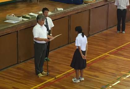 夏休み期間中の試合やコンクールなので受賞した部活動の表彰が行われました。