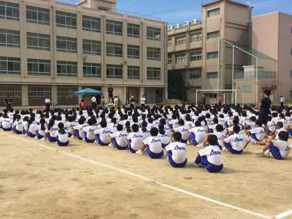 13日(木)に体育大会の全体練習1回目を行いました。入場行進から開会式、退場、観覧席の確認を行いました。