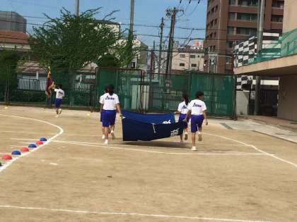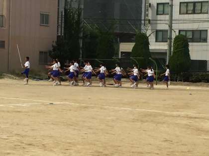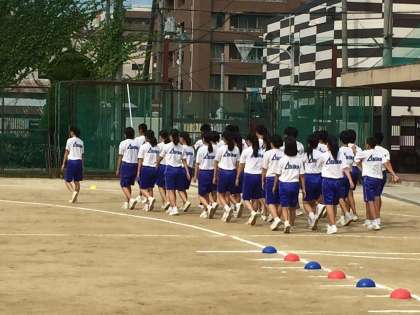 入場行進の練習です。学級で足をそろえて、大きく手を振って行進の練習を行っています。