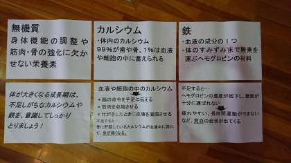 昨日の学年集会では食育について学習しました。日々の学習や部活動に全力で取り組むためにはカルシウムや鉄分等、必要な栄養素をきちんと食事から摂取しなければなりません。季節の変わり目の今だからこそ、食生活を見直してみませんか?