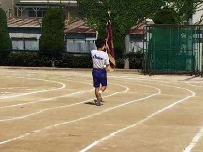 入場は、校旗を持つ生徒会から3年生、2年生、1年生の順に入ります。