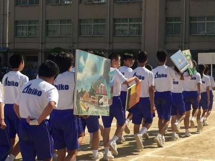 美術部です。昨年から男子部員が多くなりました。見事な絵を披露してくれました。