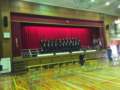 10月23日、25日に全体の並び方、入退場の仕方、金賞クラスから全体合唱の並び方、所作などを確認しました。
