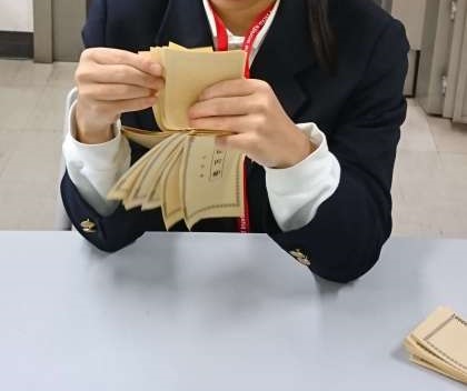 練習用のお札で、数え方を教えていただきました。他にも不断なら見ることができないところも見学させていただきました!