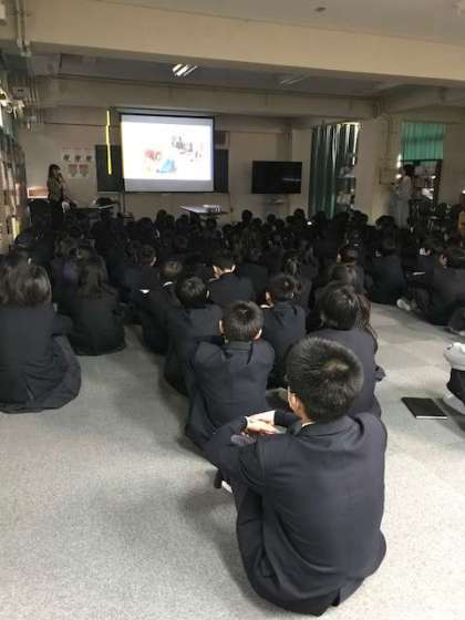6限目、図書室で、アパレル関係の仕事をされている松本美樹様にお話をしていただきました。アパレル業界の仕組みや自分がしてきたまたこれからする仕事について話していただきました。最後に伝えたい事として、