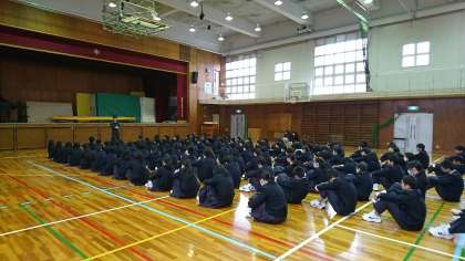 ついに2年生としての学年集会は今日が最後となりました。春休みを迎えるにあたって生活面・学習面・健康面についてお話しました。春休みは最終学年、3年生に向けての大切な準備期間です。明日の修了式は学年最後の締めくくりとして立派な姿を期待しています。