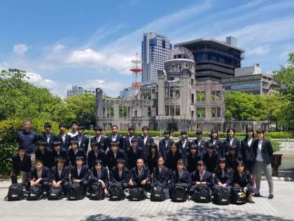 原爆ドームをバックに