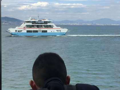 思いのほかフェリーのスピードが速くてみんな驚いていました。