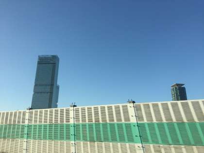 ハルカスを通過しました。もうすぐ中学校です。