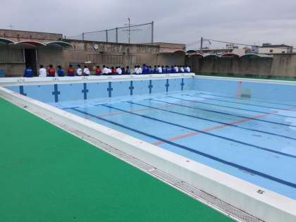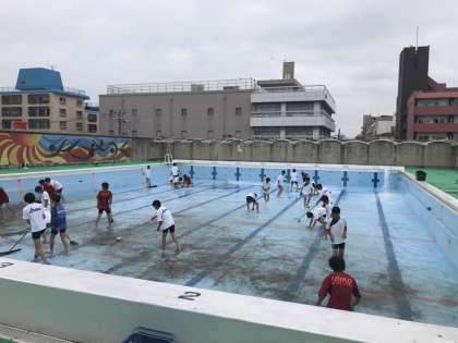 もうすぐ始まる水泳授業の前にサッカー部が総出でプール清掃を手伝ってくれました。
