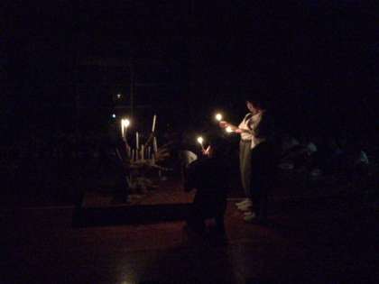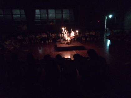 火をいただいた代議員たちも、各クラスの学級目標を発表しながらキャンドルに火を灯しました。
