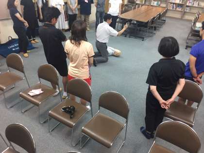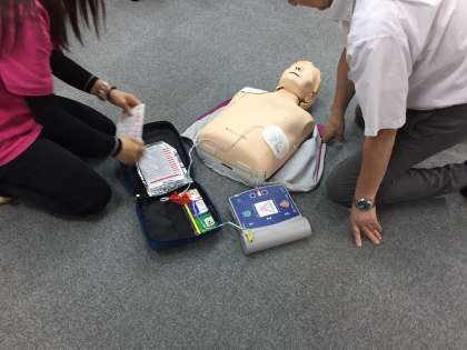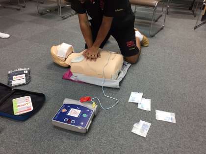 実際にマネキンを使用し、AEDの使用方法や心肺蘇生法を教わりました。