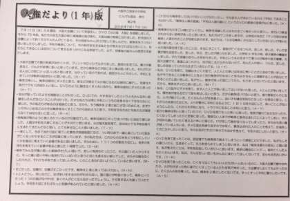 感想の一部を載せた「人権だより(1年生版)」を配布しましたので、ご家庭でもぜひご覧ください。