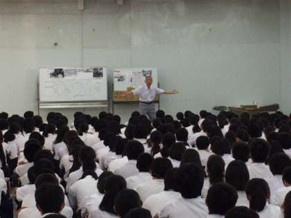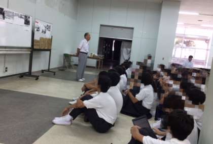 19日の1〜2時間目に平和講演会を行い、全学年で飯田清和さんのお話を聞きました。