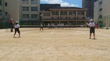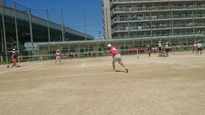 団体戦はAチーム、Bチームともベスト8、個人戦では、1、2年生の部で、2年生ペアが準優勝と3位に入りました。1年生は初試合で、緊張のなか試合を楽しむことができました。2、3年生は台風の影響で風が強く、また、猛暑のなか、熱戦をくりひろげてくれました。