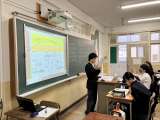 社会科の授業。 グループでの話し合いの後、発表があります。 授業で学んだ...