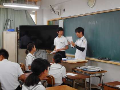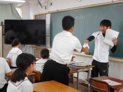 5月14日(火)4限、3年3組数学科の授業。昨日実施した「実力テスト」の返却。「ヤッター!」と歓声があがるのかと思いきや、淡々と解答用紙が返却されていきます。正解プリント配付され、各自で採点のチェック。生徒の多くは「思ったよりできなかった」という感想。ミスした問題・分からなかった問題を克服してくことがポイント。同じ間違いをしないように見直しをしっかりと!