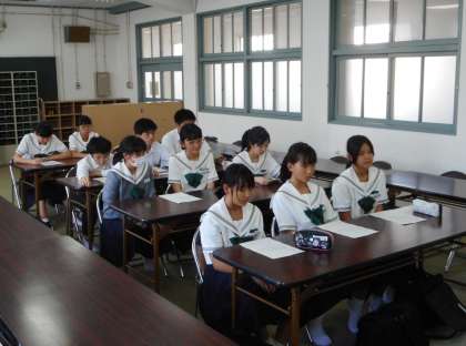 5月15日(水)放課後、住吉中学校区元気アップ事業の取り組みとして「茶道サークル」の説明会と「ナイトスクール」が始まりました。「茶道サークル」は1.3年生10数名が説明会に参加【写真:左】。「ナイトスクール」は1年生10数名が、学習課題を持参して自学自習。分からないところは、学習サポーターに質問していました。【写真:中央・右】