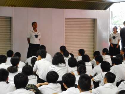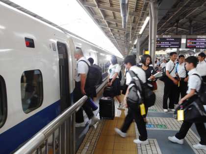 6月4日(火)、新大阪駅の集合場所に次々と集合してきます。予定通り7時30分には参加者全員集合完了。出発式では、生徒代表から「みんなと共に思い出に残る修学旅行に」と、決意が語られました。8時11分発の新幹線に乗り込み、いざ、修学旅行へ出発!