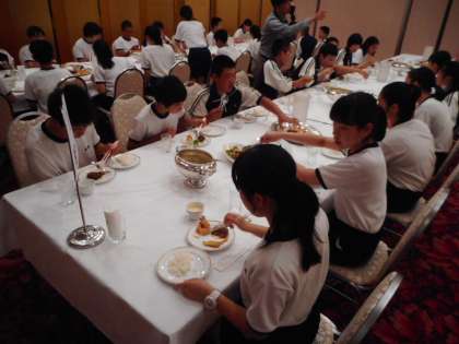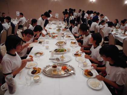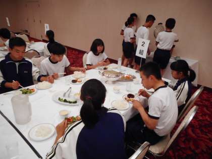 6月4日(火)、全員、疲れもなく元気に夕食会場に集合します。「いただきます」のあいさつで夕食のスタート。仲間と会話をしながら食べる夕食は最高の味となりました。お腹一杯になった子どもたちは、とても満足した表情で「ごちそうさまでした」。