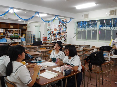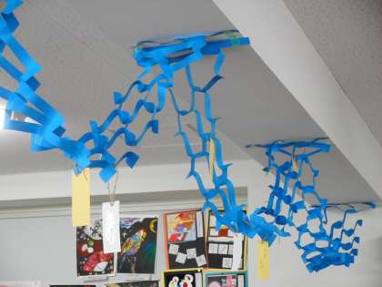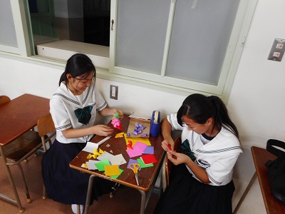 7月3日(水)放課後、美術部では、コンクール応募作品を考える側ら、七夕に向けて、笹の代わりに色画用紙で天の川の切り紙をつくり、短冊をつるすとともに飾り物を制作していました。どんな作品(笹)が完成するのか楽しみです