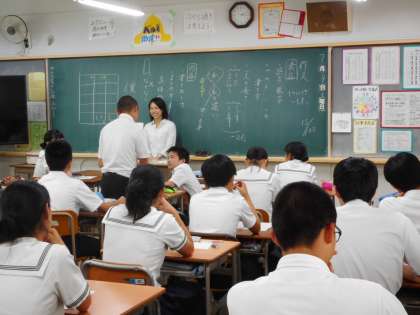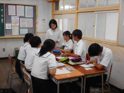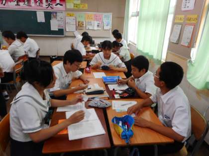 7月9日(火)6限、3年1組国語科の授業。テーマは「作文を書く」。最初と最後の一文を選択し、その間を文でつないで作文を作ります。作った作文を班で発表し合い優秀作品を全員で共有。「文と文をつなぎ作文を作る」楽しさを学びました。
