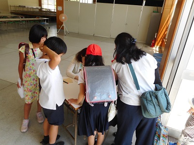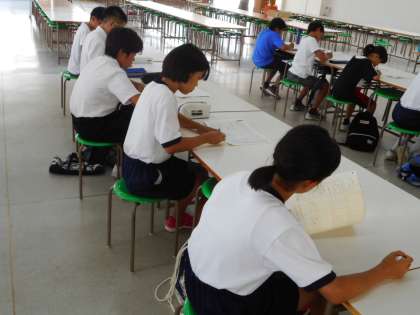 7月12日(金)放課後、学校元気アップ事業として、本校と本校に接続する小学校2校の児童生徒を対象に「漢字検定」を行いました。80数名が申込み、10級から準2級にチャレンジ。むし暑い食堂ホールですが、持てる力を精一杯発揮していました。