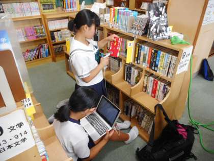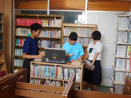 7月16日(火)放課後、午後2時再登校で文化委員会のメンバーが図書館に集合。今週と来週火曜日の2日間で、学校における図書の現有確認(棚卸し)を行います。バーコードリーダーで一冊一冊を読み取っていきます。登録もれの図書や紛失している図書を確実に点検していきます。