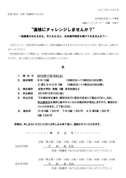 3. 検定場所 住吉中学校・南館・3階・多目的室など