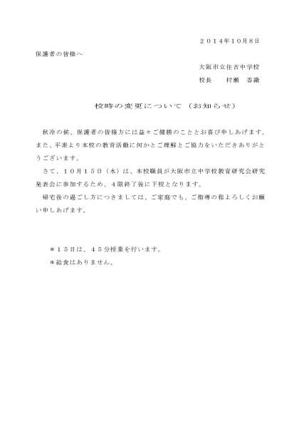 校時変更のお知らせ 大阪市立中学校教育研究会研究発表会