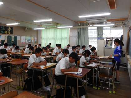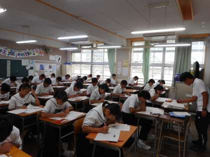 8月27日(火)、今日は全学年「テストDay」です。3年生は2回目の「実力テスト」。1.2年生は夏休みの課題に対する「課題テスト」。1年生は、5時間(1〜5限)のテストを受けるのは初めての体験。