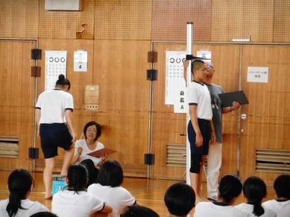 8月29日(木)、各学年「発育測定」を行いました。身長・体重・視力の三測定。4月にも測定していますので、成長の過程を一人一人が確認しました。視力に課題がある場合は、保健室の先生から検査結果について連絡があります。【写真:3年生の様子】