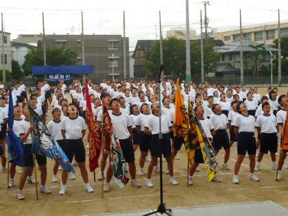 10月18日(金)、朝、小雨が降りましたが「第72回体育大会」が予定通り開催されました。生徒入場は、大きな声で足を蹴り上げての駆け足入場。これが住中スタイル。校歌斉唱、選手宣誓と続き「体育大会」の始まりです。