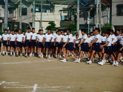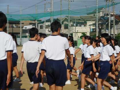 10月10日(木)6限、特別活動の時間。3年生は「団体行動」の練習。4つの団体が、縦・横を合わせながら行進し、交差するタイミング・進む方向を確認していました。もう少し、練習が必要なようです。