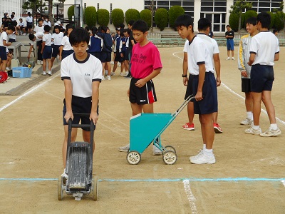 10月17日(木)午後、明日の体育大会の前日準備がスタート。グラント整地、ライン引き、テント設営、机・イスの運搬、入退場門の設置など、各係と部活動の部員で分担し作業を進めました。1時間半で準備は完了。保護者の皆様の入校は8時30分から、開会式は9時15分の予定です。