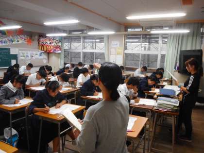 10月24日(木)6限、3年生が「英検」IBAを実施しました。この調査は、生徒自らの英語力を的確に把握するとともに、英語力の実態を分析することにより、授業における学習指導の改善・工夫に役立てるためのものです。大阪市一斉の取り組みです。
