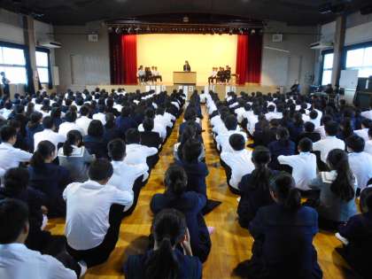 10月25日(金)6限、講堂において「後期生徒会役員選挙」を行いました。候補者一人一人が、住中をより良くするために「頑張りたいこと」「改善すべきこと」などを熱く演説しました。