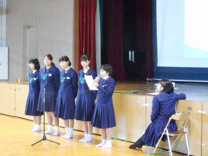 11月25日(月)5.6限、講堂において「職場体験学習報告会」が行われました。11月7.8日の両日に取り組んだ職場体験学習について、具体的な取り組み内容、感じたこと、学んだことなどを、各事業所より報告。将来、何らかの仕事に就いて社会参加していく自分自身を考える時間となりました。