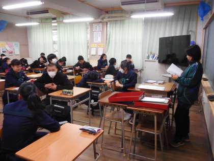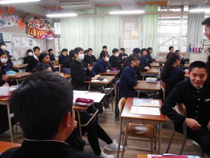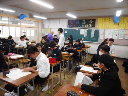 1月10日(金)5限、3年生総合の時間。教室のスピーカーから曲が流れています。子どもたちが選曲した5曲の中から、卒業式に合唱する1曲を決めます。どの曲に決まったかはお楽しみに。卒業式は3月13日(金)です。