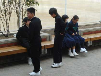 2月12日(水)、昨日までの寒さも緩み、陽ざしに温かさを感じます。昼食後の休憩時間。グランドではボール遊びをする子どもたちでにぎわっています。ベンチに座って語らう子どもたちも。思い思いに昼食後のひと時を楽しんでいました