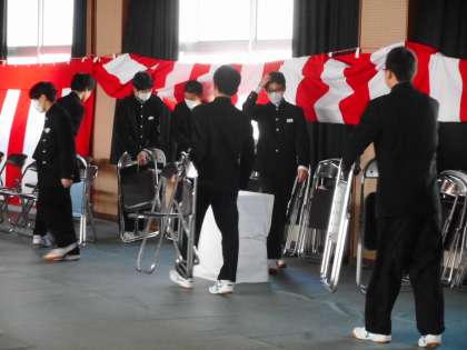 3月23日(月)、1週間ぶりの登校です。体育館と講堂に集合し、今日一日の活動内容の説明。大清掃・学級活動終了後下校となりました。